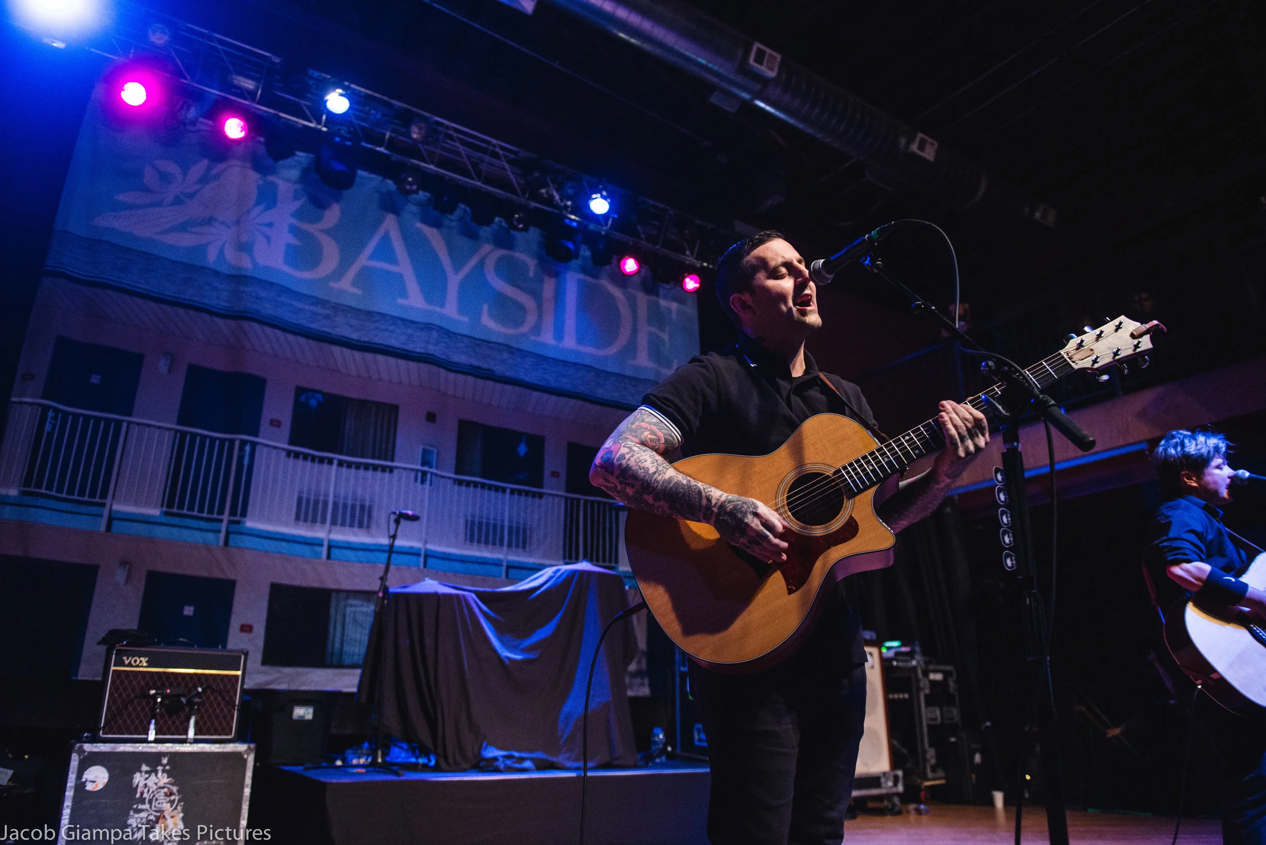 Bayside and Say Anything hit the road together this summer to bring us one of the best tours to kick off the summer. Bayside had a special acoustic set due to a death in the family of Chris Guglielmo who had to leave to be with his family. In the dark there was some light two of the four members of Bayside (Jack o’shed and Anthony Raneri) came on stage and gave a intimate acoustic set. Talking to some fans before the show none of them have ever seen a acoustic set by Bayside. Throughout the set the band played some of their hits “Megan” “Don’t Call Me Peanut” and the crowd favorite “Devotion And Desire”.